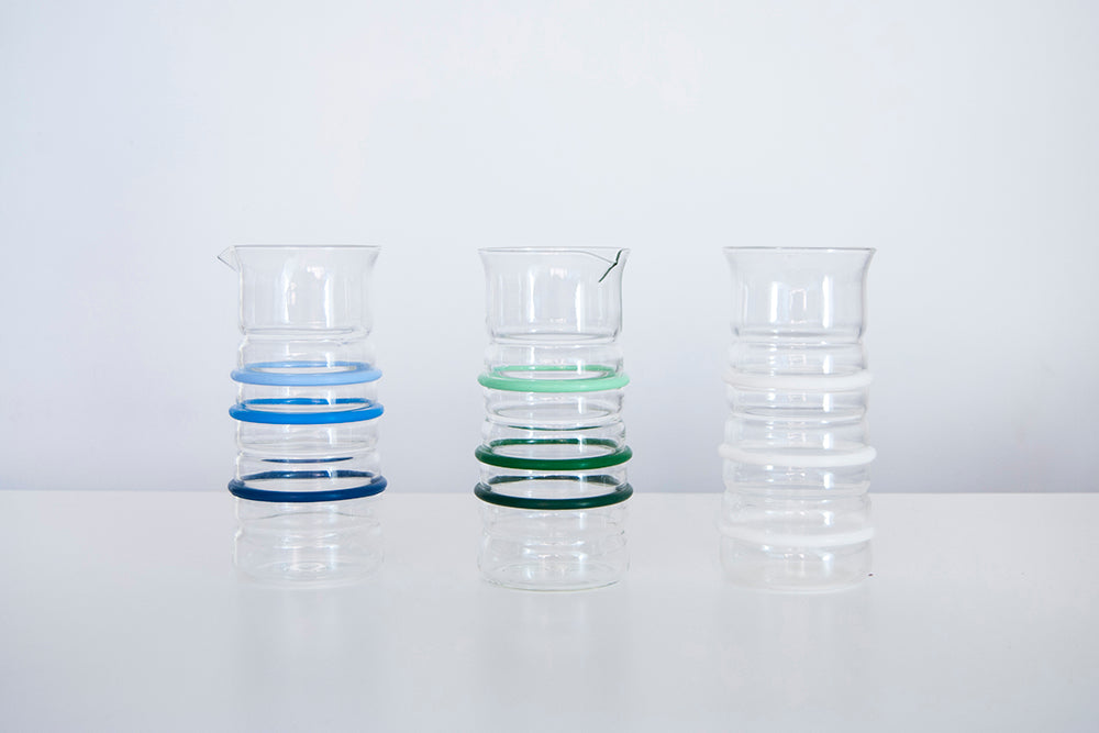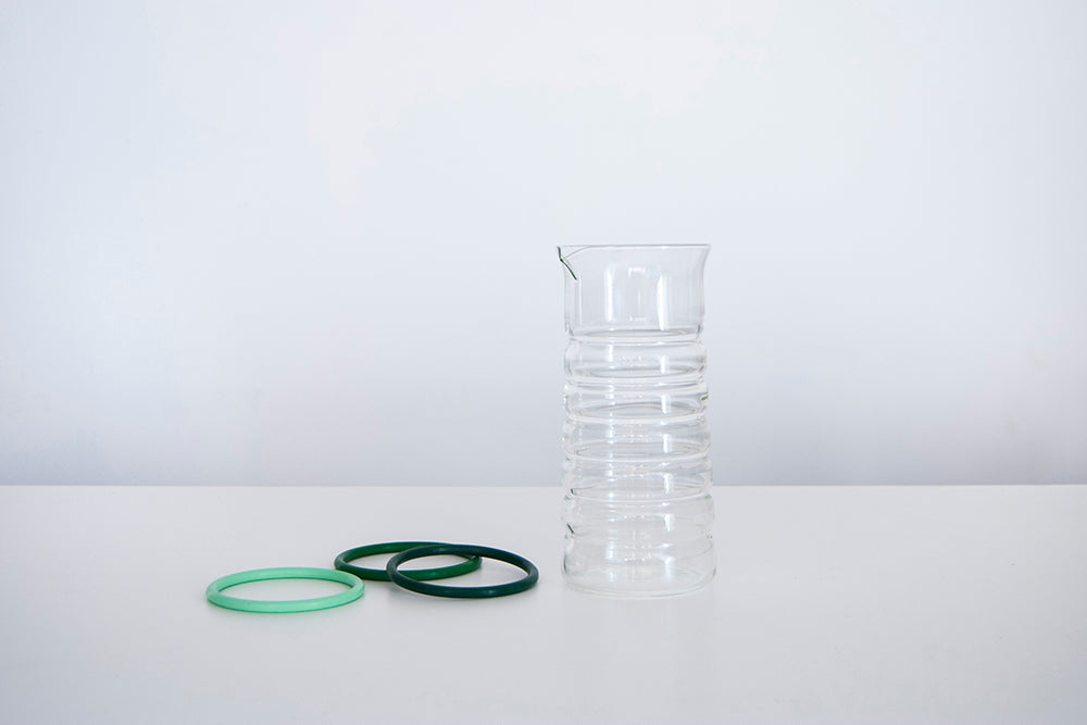 A multifunctional vessel for your daily routines. A collaboration between studio Visibility and MOLD, the Life Measured pitcher is versatile, functional and beautiful. Dishwasher and microwave safe with colorful silicone rings that can be adjusted (or removed) to mark the measurement for the task at hand. And its borosilicate glass body handles both hot and cold liquids.